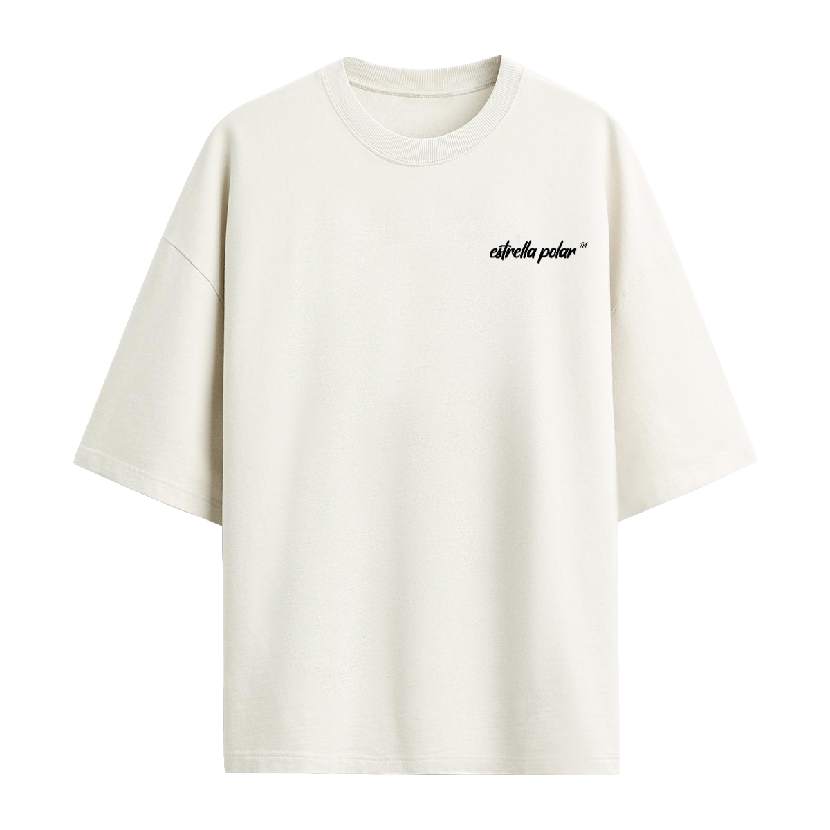 This is a T-shirt with sleeves that are 5 cm longer than the oversized version. 100% Cotton.